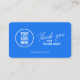 This modern and minimalist thank you business card is the perfect way to show your appreciation to customers and leave a lasting impression. The clean, blue design features a space for your logo, a handwritten "Thank You" message in a stylish script, and your company website for easy contact.