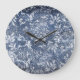 Faded Floral Denim: Grungy Textured Background Large Clock