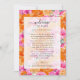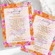 Welcome guests with this faded floral wedding itinerary card, featuring pink and orange vibrant summer florals with a soft transparent overlay for a modern, airy feel. Perfect for a summer destination wedding, this welcome letter with schedule blends style and function—ideal for a wedding welcome bag insert, order of events, or day-of timeline.