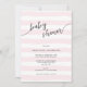 A modern, simple stripe design in pale pink. See collection for coordinating games, thank you notes, stickers and more.