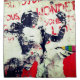 Faded red text on a white wall behind a stencil of a young african male figure—an authentic example of street art. Personalise with a monogram, name, etc. Contact the designer for special requests. © Copyright 2020 P.D., Patterns & Paintings & Graphics. All rights reserved.