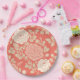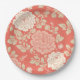 Faded Red Block Print Floral Paper Plate