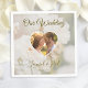 Add a romantic touch to your wedding table with this elegant paper napkin design. Featuring a dreamy white rose petal background photo by Destei, faded beneath a white overlay, the design includes a heart-shaped photo template where you can showcase a picture of the couple. Beneath the photo area, personalizable text fields allow you to include the names and wedding date, making this a thoughtful and stylish complement to your wedding stationery suite. Perfect for timeless and garden-inspired celebrations.