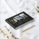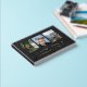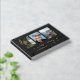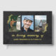 Memorial service guest book in black with the hint of a printed marble texture. In loving memory written in a bold modern gold foil script. The funeral guest book features a three photo collage where you can add your own photos of your loved one. Personalise by writing their name on the cover and the spine. Golden berry twigs adorn the sides of the outermost photos. Gold and black in loving memory memorial guestbook personalised with photos.