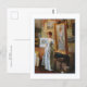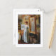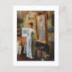 A fine art postcard featuring the oil painting titled, Fair Critics (1887) by the artist Charles Courtney Curran (1861-1942). He was an American Impressionist painter, renowned for his illuminated portraits and landscapes. The painting depicts a woman in the artist studio standing next to own portrait.
