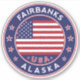 Fairbanks sticker with flag of United States, rounded shape