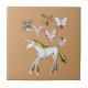 A group of fairies have coloured a white Unicorn's mane, tail, forelock and fetlocks red, blue, green, yellow, and orange!