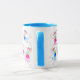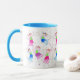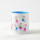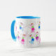 A pretty white ringer mug with powder blue rim and handle, decorated on all sides with dancing fairies, scattering fairy dust, from a watercolour painting by Judy Adamson. Matching greeting cards, t-shirts and party invitations also available.