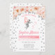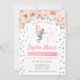 Fairy First Birthday Party Invitation. Cute design in faux glitter silver with floral accent. Invite card with glitter fairy silhouette stars and script font. Coral, blush pink and white. Perfect for a magical 1st bday celebration.