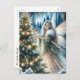 Personalised Christmas postcard. Illustration of a fairy or angel decorating a Christmas tree in an enchanted forest.