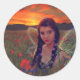 Fairy at Sunset in a field of poppies Fantasy Art Classic Round Sticker
