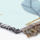 A quality printed throw has its advantages. This is a much finer weave throw than its loopier cousins, and though lighter, it is worth the investment for custom room accessorizing. The back is much prettier than the typical brown, and the fringe on the long sides very vivid, the selvage nicely done. Before photographing, I washed the throw in cold water, delicate, with a thicker woven throw the same size. On tumble dry low, this throw was dry in half the time as the other. This is a very practical quality if you use throws for furniture covers or to wrap up in frequently. The sleekness of the fabric makes it a great layer for accenting or protecting without the feeling of sitting on too much stuff. Perfect for napping or when you feel a light chill coming on. The color printing is beautiful and on this fabric, matched the design and color of my Photoshop image. This is an advantage for blending room fabrics and colors. The fringe on the short sides prints the colors from the design image and therefore varies from the side fringe. I streaked a white fractal line through the plaid pattern to give the illusion of weaving. This printed as crisp as an illusory thread, and put some white in the short side fringe, showing another advantage of print vs loomed- for artistic purposes, line lines, detail, and color integrity can be planned and preserved. My loomed throws have color limitations and more of a needlepoint texture. Print throws reproduce an exact image. The throw felt a little stiff straight out of the package, but this went away in the first delicate wash. Of course I searched the wash water for ink or bleeding and there was none.
