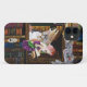 Two kittens and one fairy sit upon a bookshelves full of books for your magical cat.