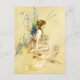 Fairy Costume postcard. Fantasy Illustration from 1910. Warwick Goble painted some of the most beautiful fantasy illustrations of the early twentieth century. Fairy costum is a cute design featuring a pretty young girl being dressed up by faries as she prepares for the ball. Her beautiful butterfly wings are pink, green and blue, and her sheer gown in made of pink lace. A pretty gift for fans of vintage fairy art, fantasy paintings, and Warwick Goble.