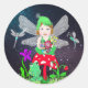 Fairy Elf Girl Sitting on Magical Mushroom Classic Round Sticker