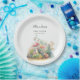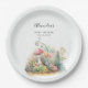 An enchanting watercolor illustration featuring a small enchanted garden with an emerald green and gold colour scheme, decorates this elegant and adorable baby girl shower personalised paper plate. Perfect for a springtime celebration, Easter events, a summer garden fête, or a charming picnic-themed baby shower, or for a year-round celebration in honour of a mum who loves the enchanted forest, fairy theme.
