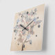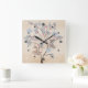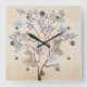 Fairy fantasy tree birds flowers beige grunge retr square wall clock