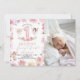 Showcase your little girl's joy with this "Fairy First Birthday" photo invitation. This design features a personalized photo slot framed by adorable watercolor fairies and blooming pink meadow flowers. The soft pastel palette and elegant floral vines provide a sophisticated backdrop for your daughter's 1st birthday picture. A beautiful way to share a favorite memory while inviting your loved ones to a magical garden-themed milestone celebration.