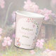 Fairy First birthday whimsical mushroom paper cup. Watercolor flowers and mushrooms with whimsical butterflies and fairies create and enchanted vibe for a 1st birthday party. Personalise with your information. If you are hosting a first birthday fairy garden theme party, this invitation and the products in the Fairy First Birthday Collection will help you curate a magical celebration. They are in The Gathering Designs store.