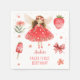 Make your daughter's 1st birthday party a magical adventure with our customisable strawberry fairy-themed birthday party napkins! Featuring a beautiful fairy in a strawberry red dress, with cute strawberries, bows and flowers, these napkins are perfect for any little girl.