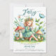 An enchanting watercolor illustration featuring a sweet little fairy in a small enchanted garden with mushrooms and wild flowers, sipping from a tea cup, decorates this elegant and adorable baby girl shower invitation with a fairy garden tea party theme. Perfect for a springtime celebration, Easter events, a summer garden fête, or a charming picnic-themed baby shower, or for a year-round celebration in honour of a mum who loves the enchanted forest, fairy theme.
