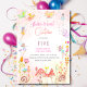 Fairy garden watercolor kids birthday invitation. Colorful and super cute. Editable name, address.