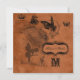 Our Fairy Garden Wedding 5.25 x 5.24" square wedding invitation features a vintage orange and black design with fairies, flowers, a crown, butterflies, and areas you can easily add your wedding ceremony information.