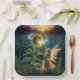 Fairy Girl Casting a Spell On a Sunflower Paper Plate