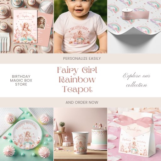 Fairy Girl Magical Teapot Rainbow First Birthday Invitation