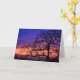 Original photograph of a tree silhouetted against a beautiful sunset. On the first branch on the left side of the trunk of the tree it the branches form a shape that looks like a little fairy girl sitting on a stump playing a recorder instrument. Card is blank inside so you can add text as you like or leave blank to personally write your own notes!