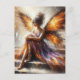 Fairy in a purple dress sitting on stairs postcard