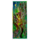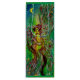 Whimsical nocturne ,magical flower faery is sitting in the moon light colourful vibrant watercolor painting with golden and silver foil in yellow,green,white,red colours.