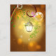 A pretty butterfly fairy with pink angel wings resting on a vine near a shining lantern with leaves and bubbles floating through the air.