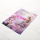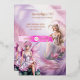 A vibrant real foil print (choose gold, rose gold or silver) rests against a soft watercolor pink and purple plume smoke background. Two exquisite fairies with their wings wide open are sitting on floral rocks and are wearing flower headbands. They appear to shimmer and shine and have long blonde hair. The back has the same design, sans one fairy girl, and a single template for additional wording, if required. If not, simply clear the template to leave the graphic only. This is ideal for a "fairy theme" birthday, fairytale bridal shower or an enchanted folk ladies birthday party.