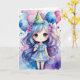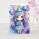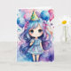 Make someone's birthday truly magical with this customisable card featuring a charming chibi girl. With her beautiful blue hair, enchanting party dress, and festive hat, she stands amidst colourful balloons and whimsical watercolor splashes, bringing a fairy-tale atmosphere to the celebration. This card is perfect for children and anyone who loves cute and dreamy designs. Customise the inside message with your personal touch to make it even more special. Ideal for adding a sprinkle of magic to the birthday girl's special day, this card is sure to bring smiles and joy. Celebrate in style with this delightful and customisable birthday card!