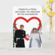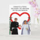 This lovely card is for that special couple who have entered marriage following their joyful engagement. Perhaps you were there for their wedding day or perhaps not, but regardless you wanted to send them a card that says just how much you care. Outside is a fun design of an elegant bride and groom, but they are cartoon-like and are a fairy tale prince and princess couple. It's cute, with fun touches but mostly modern. On the back is a heart design, but we encourage you to replace it with a photo of yourself to make it extra personal. Inside we've written just the right message to speak to the moment; but just in case it needs something personal, you can customise it with your own words.