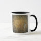 Dark hues, tangled pictures, a person in white is going to cross through the hallway to a fairy tale. Egyptian figure painting style, tanned skin, pure white robe and turban, the exotic protagonist is depicted as if one of royal members. With a red dot leading, he comes in front of a mysterious mural, where red and green spots fly like fairies. On the wall show an old trees, a bird with rising wings, and the mystic pictures. As if under the glow of a torch, light turns dimmer out of the centre, indicating a secret is about to be revealed.
