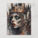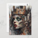A gorgeous woman with a castle on her head and some macabre elements like skulls in the scene