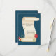 Fantasy theme wedding response card done in a blue leather look, with graphics of a parchment scroll. Colourful red flowers and greenery decorate the bottom of the scroll. Personalise the text for your wedding day. Matching Fairytale wedding products are available.