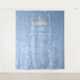 Create your own DIY light blue and silver elegant backdrop tapestries to add sparkle to your special day! Send a big "welcome" as your guests arrive with a large fabric banner/sign... Whether you're celebrating a sweet 16/15 birthday party, fairy tale wedding, floral fiesta, a royal princess bridal or baby shower... these easy DIY template tapestries can make it more memorable. Your friends and family will simply love taking their pictures in front of it! The light blue and silver theme on this floral fabric prop can work beautifully for a Cinderella themed quinceanera or winter wonderland masquerade party as well... The rustic silver design hand illustrated by Raphaela Wilson, features a luxurious pattern of light blue roses, a glamourous silver crown tiara, and faux glitter butterfly confetti. By editing the fairytale design further, other faux metal finishes in gold, rose gold, and baby blue can be revealed. Simply unhide those extra layers, and click on any svg graphics to change them to any custom colour - even the watercolor rose pattern flowers! If you'd like to add an additional Cinderella princess design, there is an optional glass slipper shoe with a silver or gold butterfly you can add. These pretty custom photo backdrops can be easily personalised by you to match your theme colours perfectly. Care to alter the script calligraphy and modern typography? More font styles are at your fingertips as well. Enjoy! Category: custom hanging wall backdrops for parties; fairy tale wedding photo backdrops; and royal baby shower tapestries for boy or girl. Dusty blue and silver wedding theme colours: light blue, baby blue, white, and ice silver.