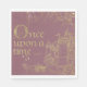 These elegant and magical Fairy Tale theme napkins feature an enchanting gold glitter design over a dusty pink blush coloured background. The top portion features a pattern of clocks. The middle features a magical princess castle, and the bottom left has a horse and carriage. The fairytale phrase "Once upon a time..." is printed in a matching gold.
