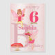A cute personal age birthday greeting magnetic card featuring Fairies and Toadstools on a pink background.