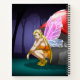 Cute colourful fairy under a mushroom, in a dark forest!