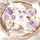 Colour Scheme: Soft pastel hues of pink, lavender, sage green, and golden accents.
