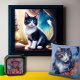 Super cute watercolor kitten. This watercolor design is of a blue kitten on a slate blue background. Green eyed kitten.