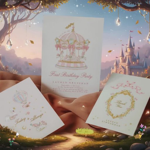 Merry-go-round princess Girl Carousel Fairytale Bows Pink Birthday Party Invitation