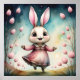 Happy bunny girl, fairytale, watercolor, enamel vibes, so cute as a Illustration for the wall of a children's room or as a spring decor. - Kate Eden Art