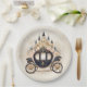 This elegant design features a feminine fairytale carriage in navy blue with a princess castle behind adorned with blush pink florals.