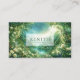 Define your brand with vibrant growth and the magical elegance of a hidden kingdom using this captivating business card. The design transports you to a spectacular sunlit forest valley, where dense, vibrant green foliage covers steep hillsides surrounding a serene river. In the distant center, a towering fairy tale castle or palace sits nestled on the ridge, bathed in ethereal light that bursts from the sky. The entire scene is lavishly framed by an abundant foreground of creamy white and pale yellow roses and wildflowers, creating a lush, immersive archway. This artwork blends rich, magical realism with serene natural beauty, conveying a sense of wonder, serenity, and high-end elegance that makes your card truly unforgettable. This business card is ideally suited for a luxury event planner specializing in fairytale or garden-themed celebrations, a boutique hotelier wanting to convey a magnificent, picturesque setting, or a fantasy novelist or game developer seeking distinctive, narrative-driven branding. It would also perfectly suit a fine art print seller focused on mystical landscapes, or an exclusive floral designer emphasizing luminous, garden-style arrangements. The card's captivating combination of enchanted scenery and abundant white florals ensures it is versatile for any sophisticated announcement, a refined gift enclosure, or an elegant invitation.