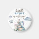 Celebrate the soon-to-be-born knight with this enchanted, storybook themed fairytale Magnet in blue colours with castle, dragon and clouds for your Little Knight Boy Baby Shower